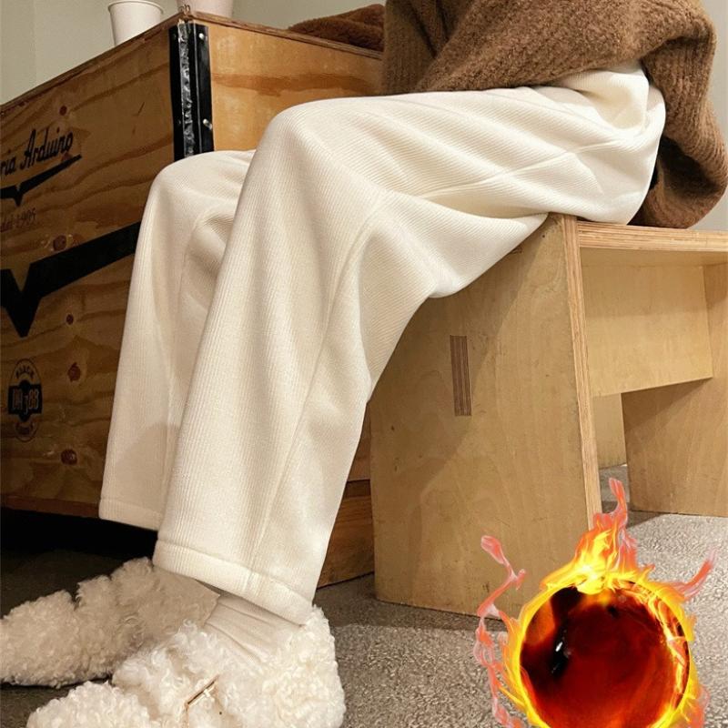 Fleece Lined Corduroy Ankle Pants Women Autumn Winter High Waist Sweatpants Loose Harem Straight Wide Leg