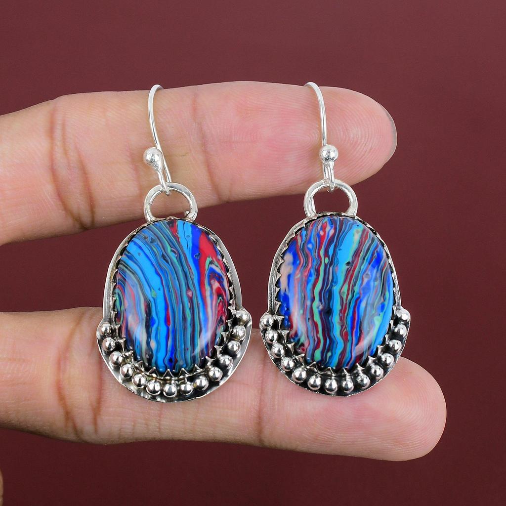 Regenbogen Calsilica Edelstein Ohrring 925 Sterling Silber Ohrring Handgefertigte Ohrringe Geburtsstein Schmuck Verlobungsgeschenke Designer Silberschmuck