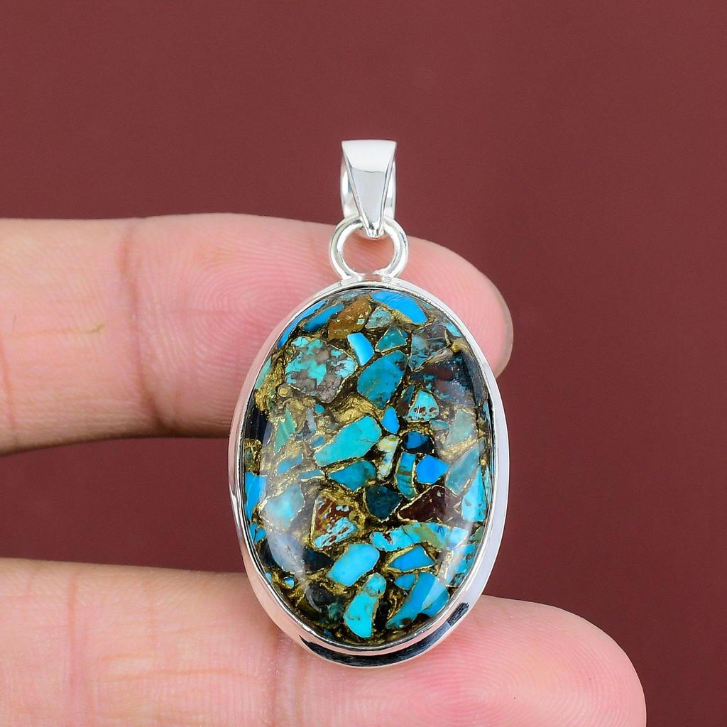 Copper Chrysocolla Pendant Natural Gemstone Jewelry 925 Sterling Silver Pendant Handmade Dainty Pendant Healing Stone Jewelry Gifts For Wife