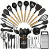 Silikon Küchenutensilien Set vom Chefkoch, 34-teiliges hitzebeständiges Küchenhelfer und Werkzeug mit Reibe, Holzgriffe für Antihaft-Kochgeschirr