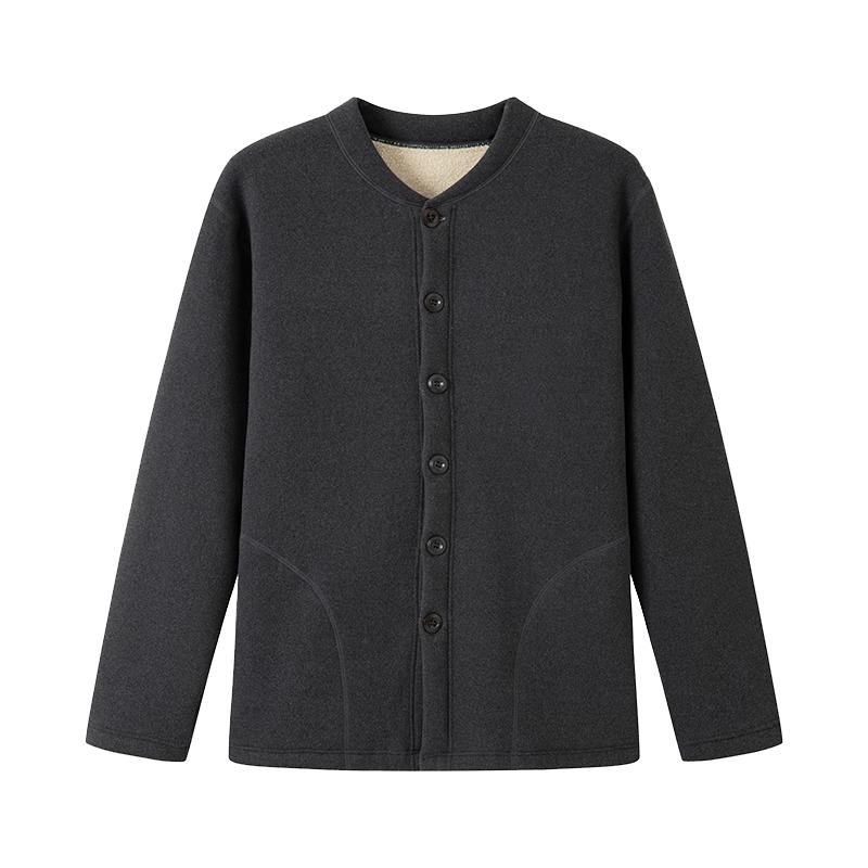 Yiershuang Herren Verdicktes Lammwollfleece Thermisches Rundhals-Oberteil