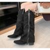 Mode Neuer Stil Mode Winter Streetstyle Spitzschuh Kniehohe Stiefel Damen Niedrige Absätze Schuhe Weibliche Lange Stiefeletten Zapatos De Mujer