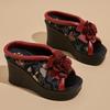 Mode GKTINOO Ethnischer Stil Damen Hausschuhe Sommer Stickblumen Keile Offene Zehen Hausschuhe Außen Echtes Leder Plateau Pantoletten