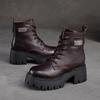 Mode GKTINOO Naturkuhleder Damen Schuhe Plüsch Warm Winter Square Med Heel Stiefeletten Schnürung Reißverschluss Damen Pumps Größe 35-40
