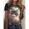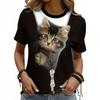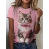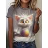 Women's T-shirt, Summer Cat Printed Top