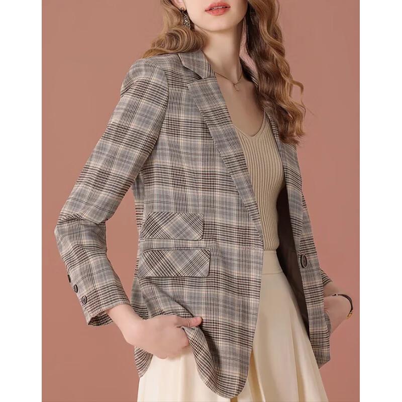 Elegant Women's Plaid Long Sleeve Short Jacket