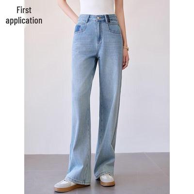 Schlitz Straight Jeans für Damen, High Waist Straight Hose für Damen, Slim Hair, Neun-Punkte-Hose, Zigarettenhose für Damen, Herbst