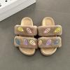 Niedliche Zehenfreie Lässige Flauschige Hausschuhe für Damen zum Tragen Herbst und Winter Mode Cartoon Karotte Zuhause Ein-Wort Baumwollhausschuhe