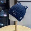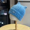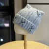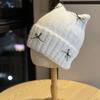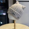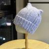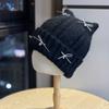 New Cat Ear Woolen Hat for Women in Autumn and Winter with Bow Korean Version Thickened Warm Knitted Hat Showing Face Small Baotou Hat