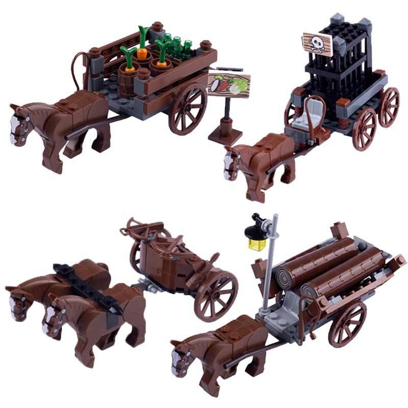 MOC Mittelalterliche Bausteine Solider Streitwagen Figuren Zubehör Kutsche Bauernhof Garten Transport Set Tiere Mini Ziegel Geschenke