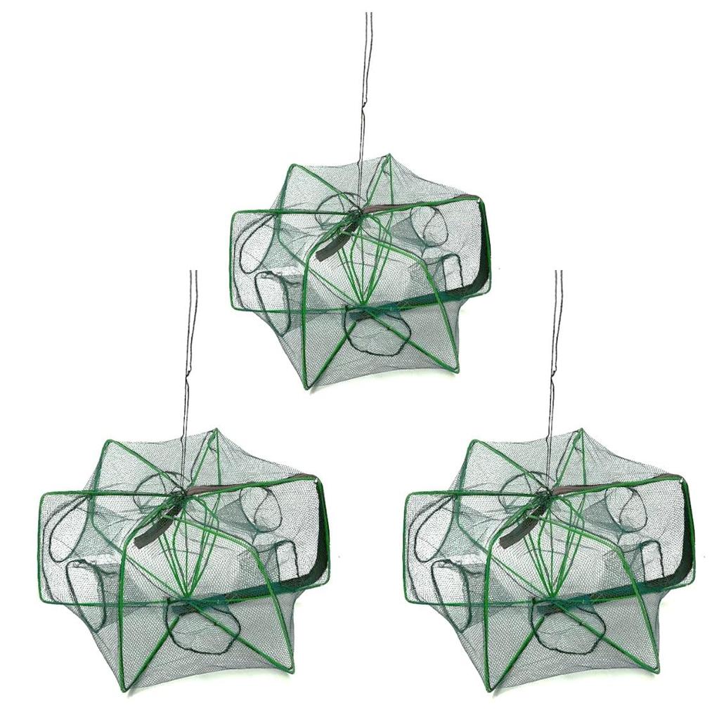 Fishing Tackle, Fishing Net, 60cm Diameter, 6 Holes, Set of 3, Foldable, Compact, Great for Catching Shrimp, Crab, Crayfish, Small Fish, and More