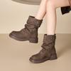 Martin-Stiefel mit dicker Sohle für Damen 2025 Herbst und Winter neue Retro-Kurzschaft-Falten-Stapel-Hosen-Schaftstiefel Western-Ritter-Kurzstiefel