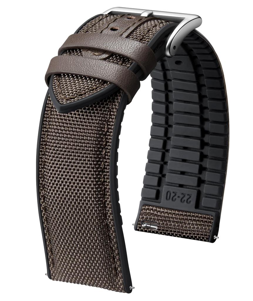 BINLUN Nylon Silicone Watch Quick Release Canvas and Rubber Hybrid Replacement Watch Band for Men and 9 Buckle Strap, 18mm, 19mm, 20mm, 21mm, 22mm,