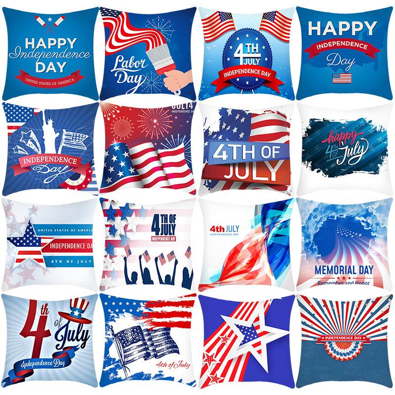 Independence Day Throw Pillow Cover Blue Theme Plush Print Sofa Bed Car Cushion Cover Without Core