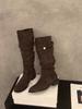 Koreanisch 2025 Herbst neue Retro spitze dünne Wildleder plissierte Stiefel hohe Stiefel Damen Ritterstiefel