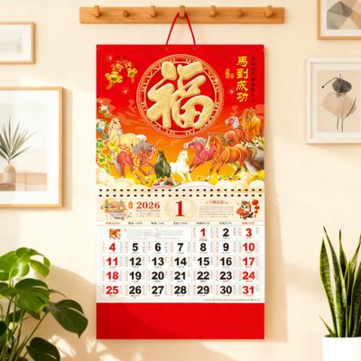 2026 Chinesischer Mondkalender Jahr des Pferdes Wandkalender 12 Monatskalender für Chinesisches Zuhause Restaurant Büro Schule Neujahrsdekoration