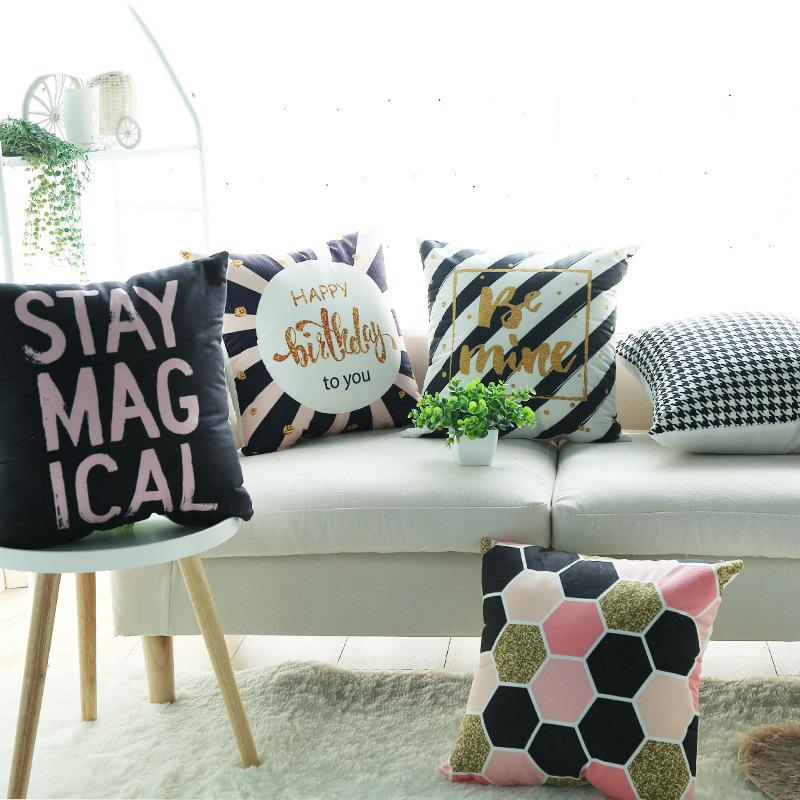 Hahnentritt Schwarz Goldpulver Geometrischer Druck Kissen Buchstabenkissen Weiches Sofakissen Bett Tatami Kissenbezug