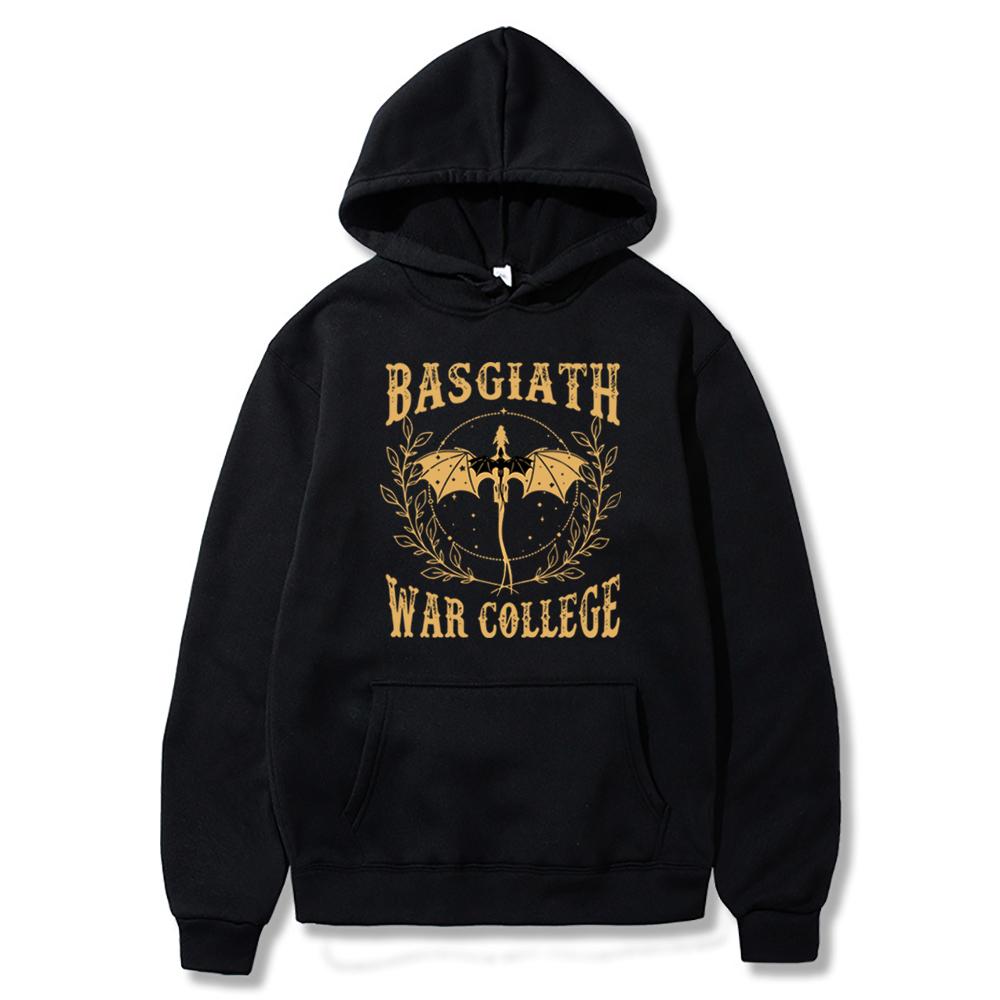 Vintage Fourth Wing Hoodie Schwarz und Gold Drachengrafik Basgiath War College Kapuzensweatshirt Rebecca Yoros Buchliebhaber Hoodies