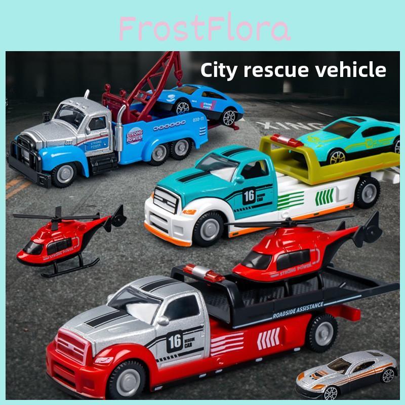 Alloy Rescue City Vehicle Trailer Helicopter Children Toy Model For Play Role