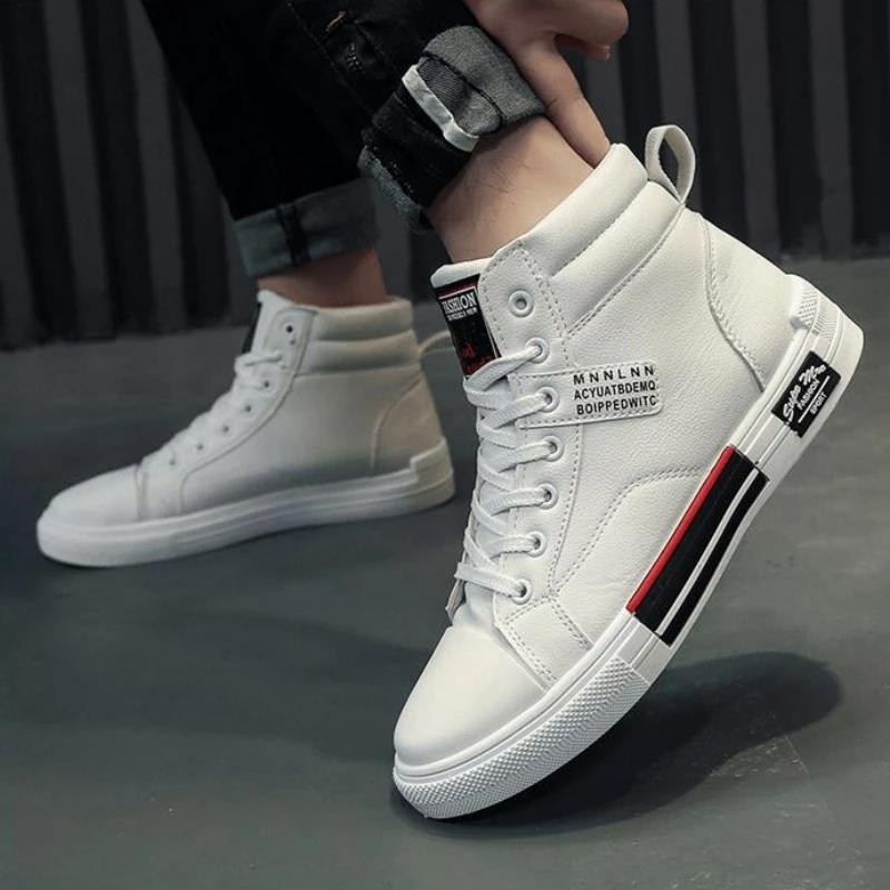 Leder Herren Canvas Schuhe High-Top Freizeitschuhe Herbst Herren Rutschfeste Sneaker Winter Flacher Tennisschuh Zapatillas De Hombre