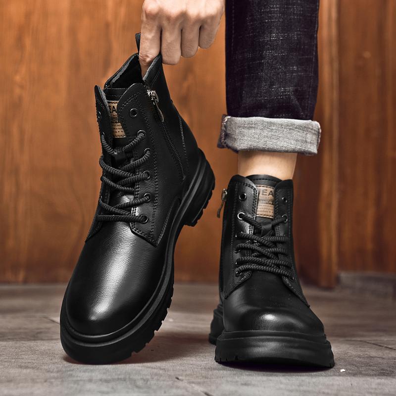 Herbst Winter Neue Lederstiefel für Herren Schwarze Stiefel Plateau-Stiefel Allround Herrenstiefel High Top Herren-Sneakers