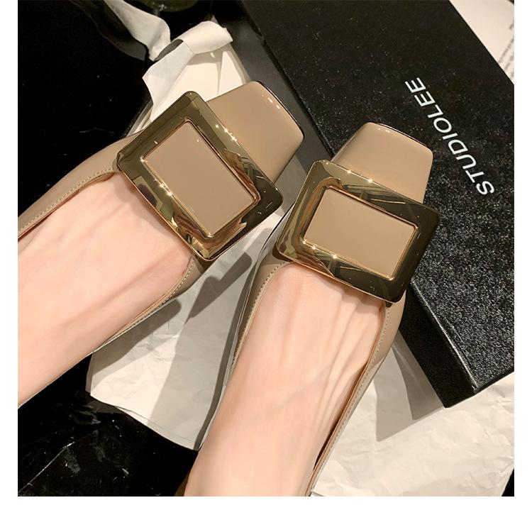 Spot Rindslederversion~ Traubenmutter gleiche quadratische Schnalle einzelne Schuhe Weiblichkeit quadratischer Zeh dicker Absatz Lackleder Pendel-Ballerinas Damen