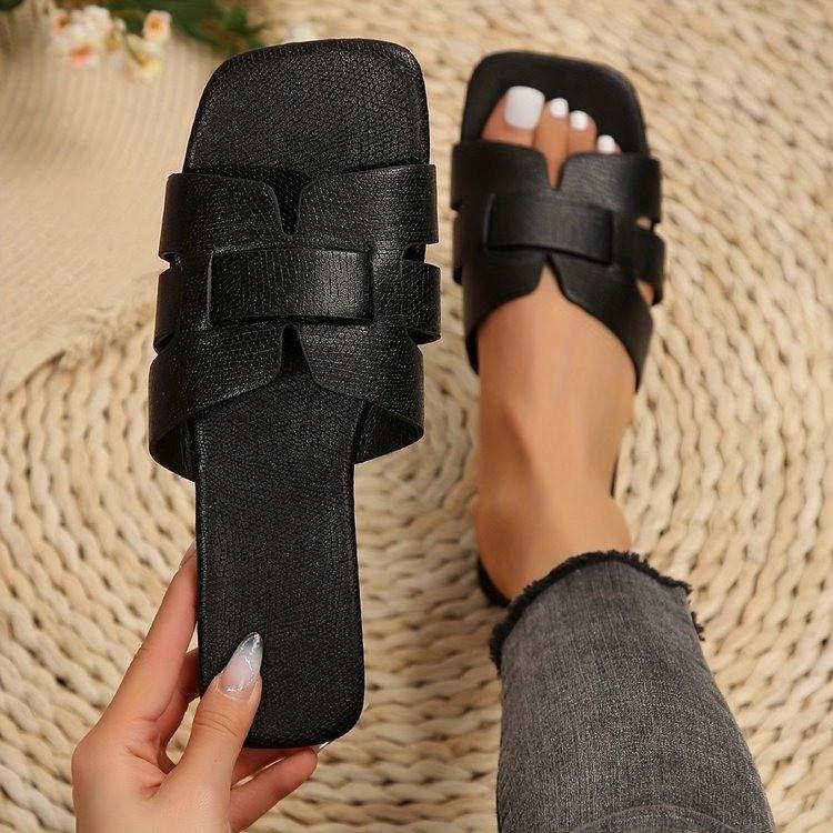 2025 Südostasien Einfarbig Außenhandel Übergröße Flacher Boden Quadratische Zehenpartie Bequeme Strandschuhe Coole Hausschuhe