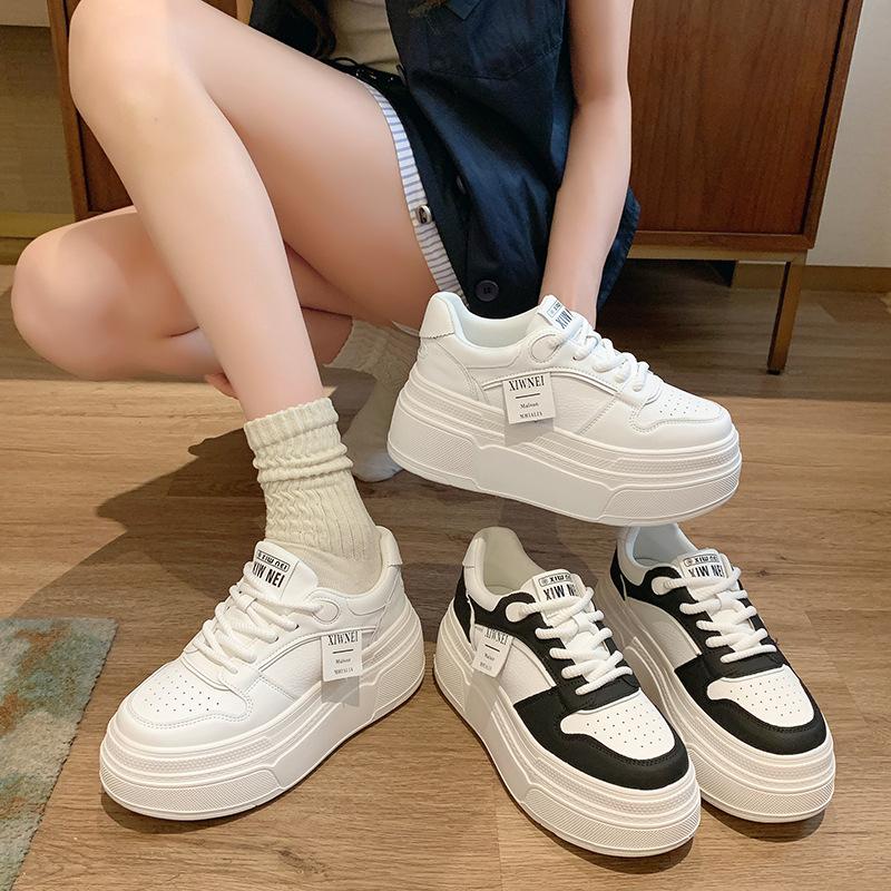 Dicke Sohle, innen höhenverstärkende Board-Schuhe, Damen 2025 Herbst, neue Mode und Freizeit, beliebte Muffin-Schuhe, super angesagte weiße Schuhe, Damenschuhe