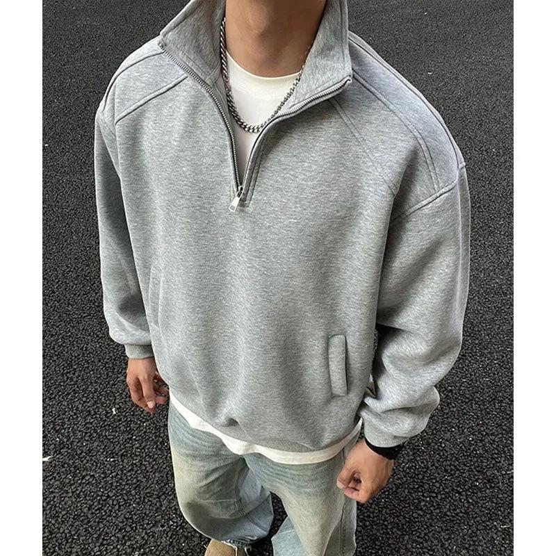 Reine Baumwolle Schweres Gewicht Hohes Gewicht Stehkragen Halber Reißverschluss Sweatshirt Reißverschluss Neues Set Amerikanischer Stil