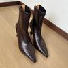 Rindsleder-Version~ Französische spitze elastische dünne Stiefel Damen 2025 dünner Absatz hoher Absatz kurze Stiefel Reißverschluss hinten Temperament einzelne Stiefel
