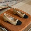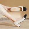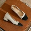 Leder quadratischer Kopf Farbabstimmung kleiner Duftstil niedriger mittlerer Absatz Blockabsatz Einzelne Schuhe Damen Koreanische Version Frühling und Herbst neu Frenc