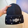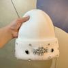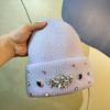 Light Luxury Rhinestone Rabbit Fur Beanie Women's Autumn and Winter White Knitted Hat Big Head Circumference Showing Face Small Baotou Cold Hat Trend