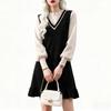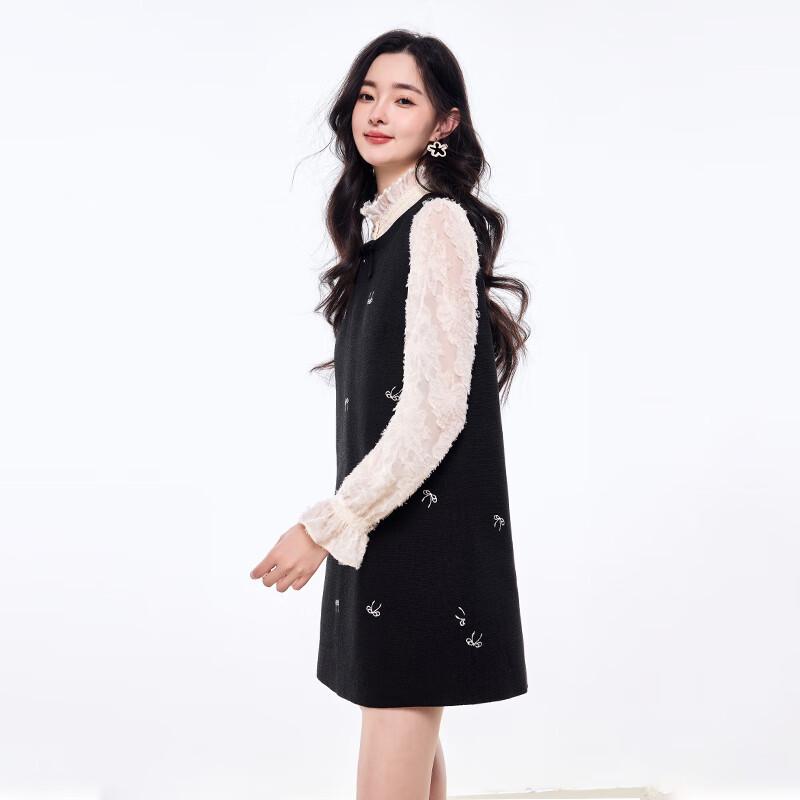 Herbstwasser Dame 2025 Frühling Ärmelloses Stickerei-Kleid mit Schleife
