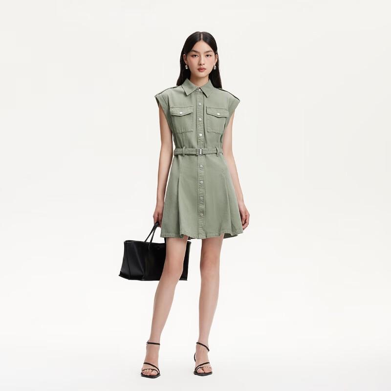 VEROMODA Women's 2025 Summer Cotton Lyocell Belted Lapel A-Line Mini Dress