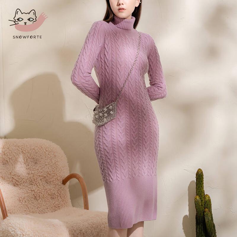 Sinuofude 100% Cashmere High-Neck Knitted Sweater Dress