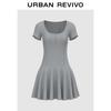 UR Damen Freizeitkleid mit Kontrastbesatz, kurzen Ärmeln und A-Linien-Schnitt