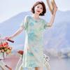 Pastellfarbenes Damen Sommer Rundhals Bedrucktes Freizeitkleid
