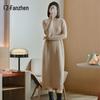 FANZHEEN Women's Hooded 100% Wool Knit Midi Dress