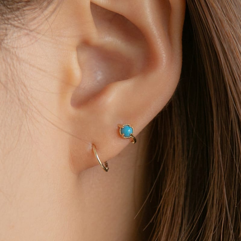 LUNNE 14k Türkis One-Touch Ring-Ohrringe (14 Karat Gold) #ER07
