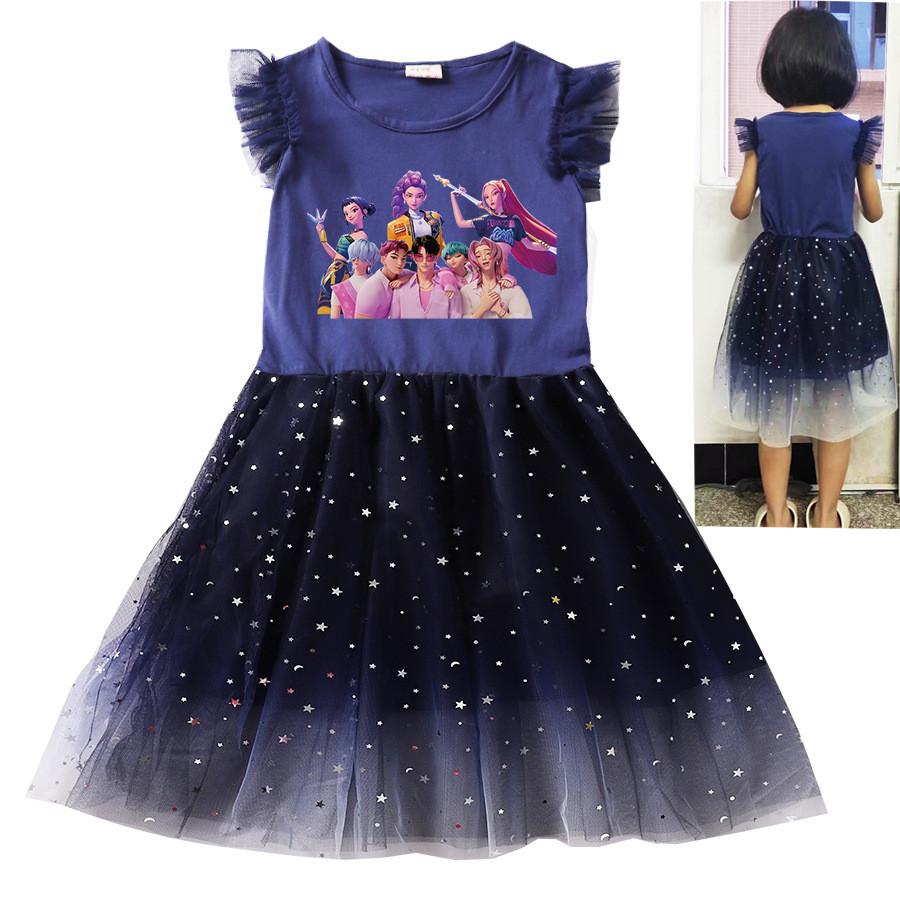Kinder Mädchen Anime Cartoon K-Pop Sänger Print Ärmellos Rüschen Lässig Mesh Kleid