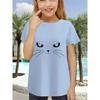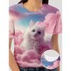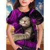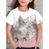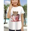 Rundhals 3D Katze bedrucktes Top Lässige Kurzarm Kinder Mädchen T-Shirts - Weicher Mitteldehnbarer Polyesterstoff Sommer Locker sitzende Kleidung