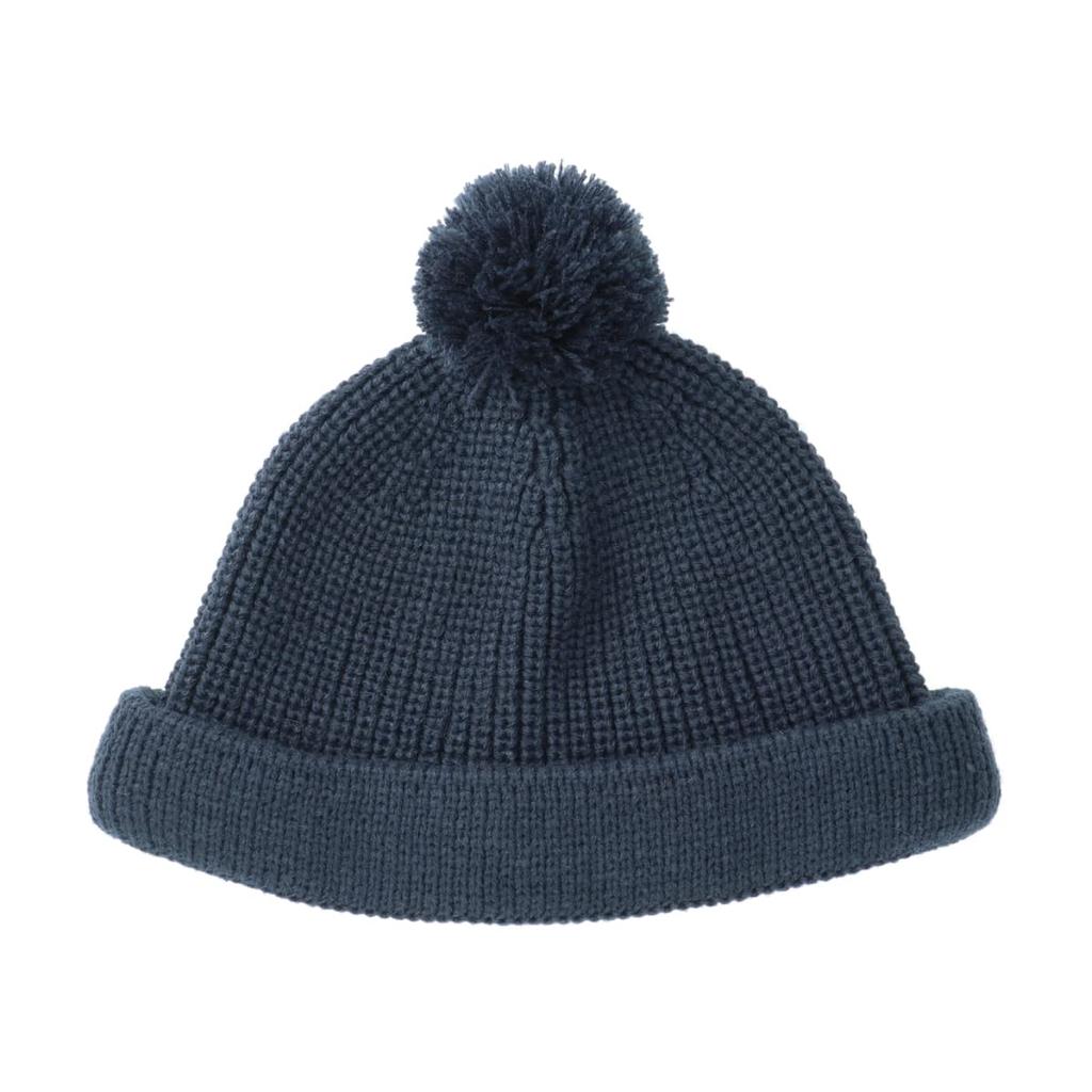 Eine flache Strickmütze mit Bommel-Detail, die so konzipiert ist, dass sie äußerst angenehm zu tragen ist.