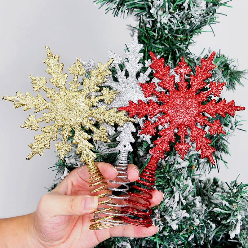 1 Stück Glitzernde Exquisite Metall Weihnachts-Weihnachtsdekoration Partydekoration Baumspitze Stern Goldprägung Schneeflocke