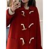 Dufflecoat mit Knebelknöpfen Damen Wollmantel Einfarbig Strickjacke Oberteil