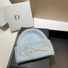 Perlenmütze Kaninchenhaar Warme Strickmütze Damen Modische Winter Kaltmütze Erhöhen und Verlängern Doppelt Gefaltete Kanten Mütze