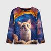 Kinder Cartoon Tier Kätzchen Print Pigmentdruck T-Shirt Jungen Niedliches Langarm Weiches Bequemes Oberteil