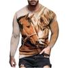 Rundhals 3D Pferde-Print T-Shirts Lässige Langarm Herren T-Shirts - Weicher Mittlerer Stretch Polyesterstoff Frühling und Herbst Relaxed Fit Kleidung