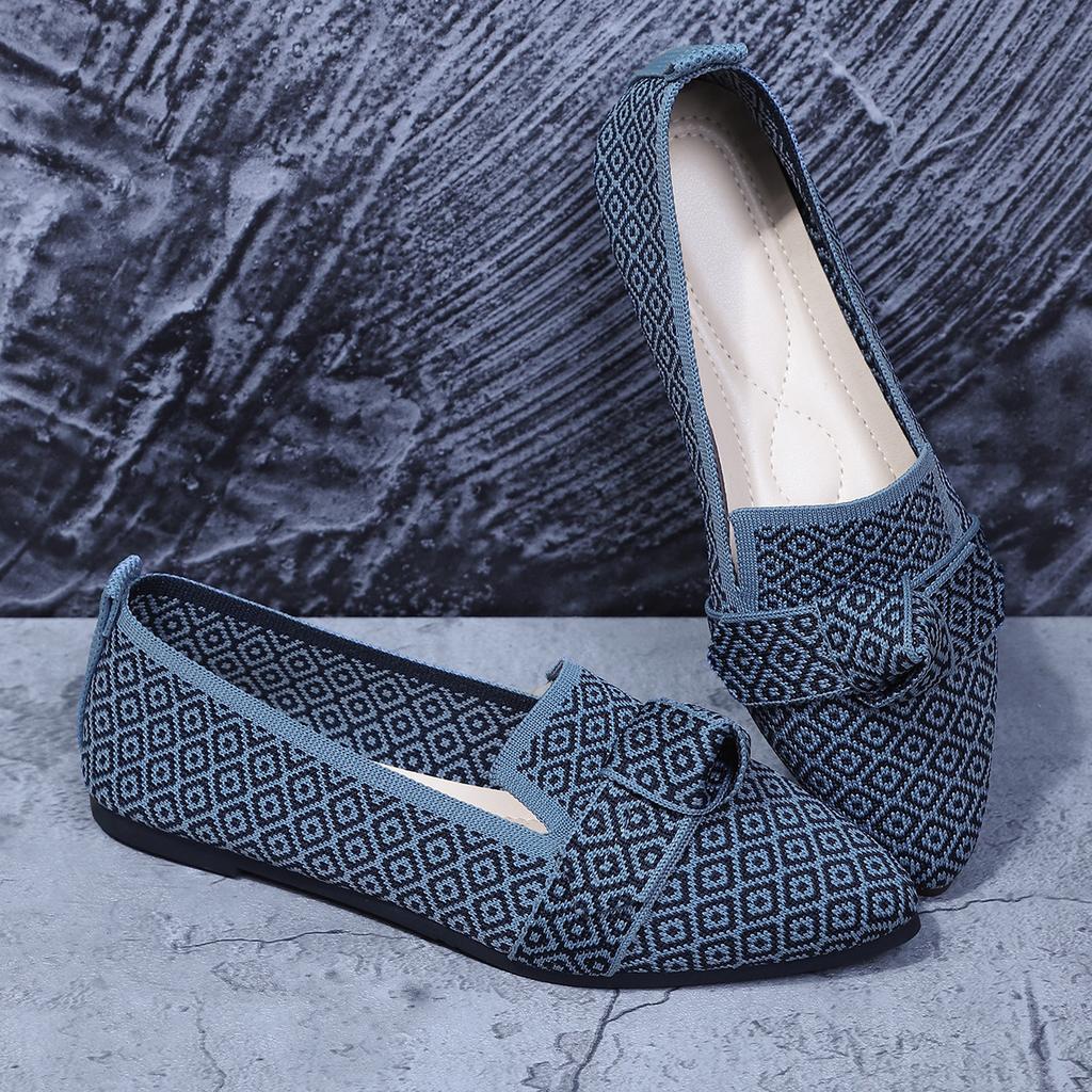 Schmal zulaufende flache Dameneinzelchuhe in Übergröße 2025 Mode Fliegenstrick Ein-Schlupf Schleife Lässig Atmungsaktiv Farbblockierung Einzel