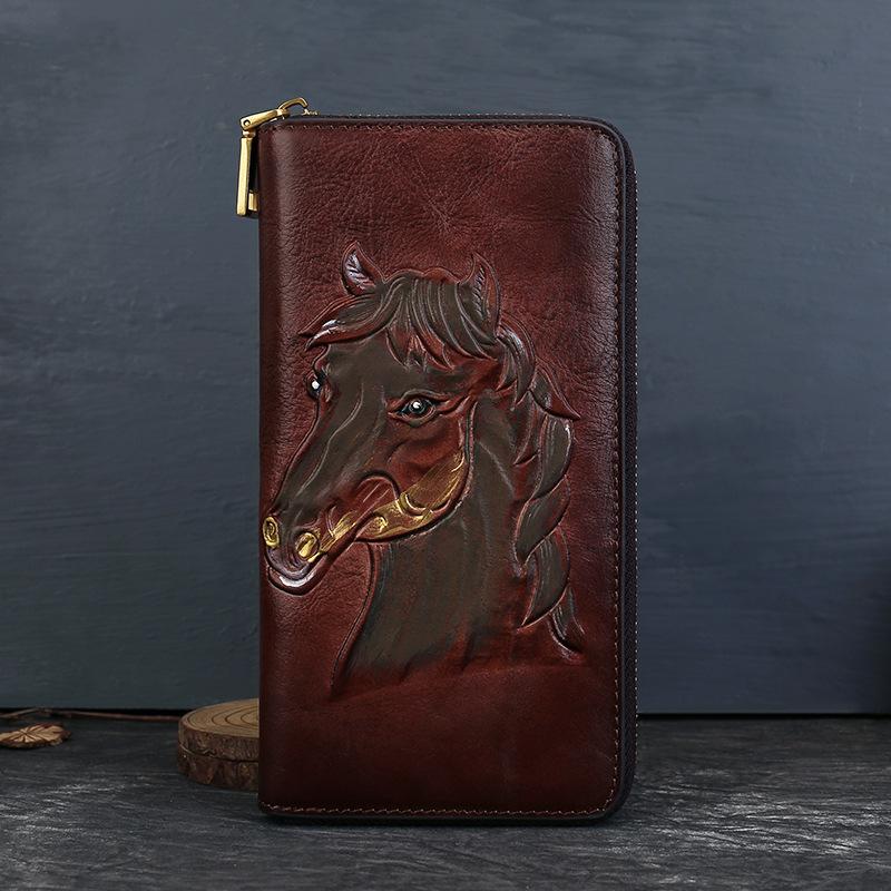 Echtes Leder Geldbörse, Retro Mehrschlitz-Tasche, Geprägte Clutch mit großem Fassungsvermögen