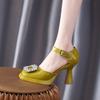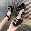 Plateausandalen Mary Janes Damen 2025 Sommer Explosion Strass dicker Absatz Temperament Ein-Wort-Schnalle High Heels eckige Spitze wasserdichtes Plateau
